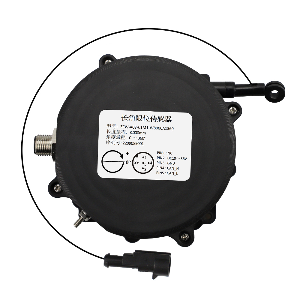 ? ? ? ? ?ZCW-A03-C1M1-W8000A1360 是直川科技研發(fā)生產(chǎn)的長(zhǎng)角限位傳感器。產(chǎn)品的拉繩量程 8000mm,角度量程0~360°,CAN 信號(hào)輸出,同時(shí)還提供一路干接點(diǎn)開關(guān)信號(hào)檢測(cè)功能。產(chǎn)品具有體積小,集成度高,抗干擾性能好,可靠性高等特點(diǎn)。