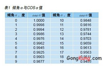 COSα值的大小決定了對(duì)秤的使用準(zhǔn)確度的影響程度,可見(jiàn)表1。