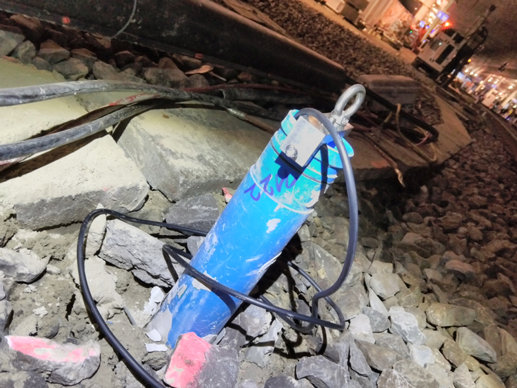 本項(xiàng)目施工現(xiàn)場(chǎng)位于若干處關(guān)鍵鐵軌路基,共計(jì)打出40個(gè)探洞,每個(gè)探洞內(nèi)含5-10根連成一串、傳感間隔2米的探頭,共計(jì)使用了225根探頭以及15臺(tái)直川科技自主研發(fā)的無線數(shù)據(jù)采集器。