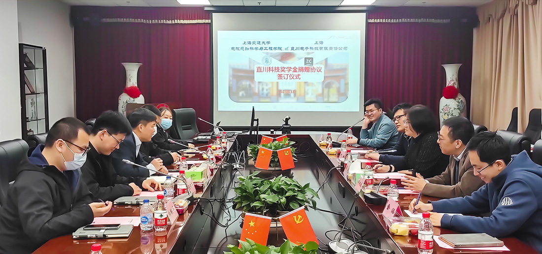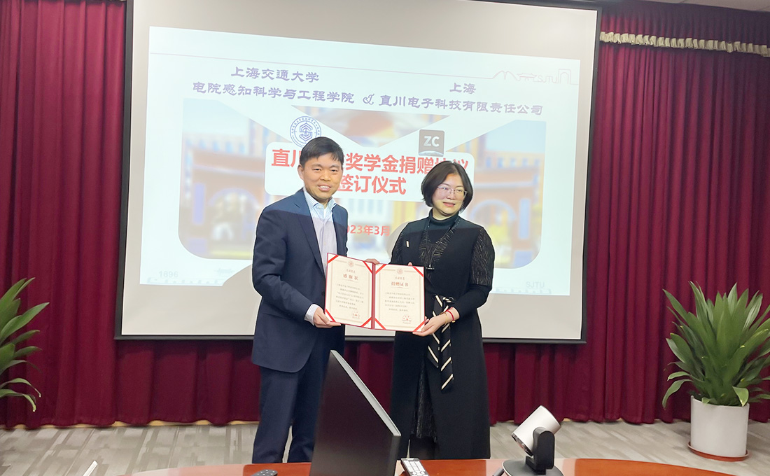 ? ? ? ? ?隨后,上海交大感知學(xué)院執(zhí)行院長邵曉巍教授與直川科技董事長劉岳代表雙方簽署了獎學(xué)金續(xù)簽協(xié)議。感知學(xué)院黨總支書記陶衛(wèi)教授,感知學(xué)院副院長金涵,感知學(xué)院副院長代彬,感知學(xué)院院長助理王濤,直川科技研發(fā)總監(jiān)張同興等人員出席見證。