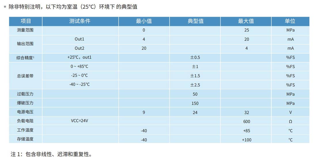 ? ? ? ? ?ZCP-A01-M 系列 單通道壓力變送器是直川科技針對液壓行業(yè)而開發(fā)的專用壓力變送器。變送器采用全不銹鋼結(jié)構(gòu),過載能力強(qiáng),抗震性好,具有多種輸出接口。