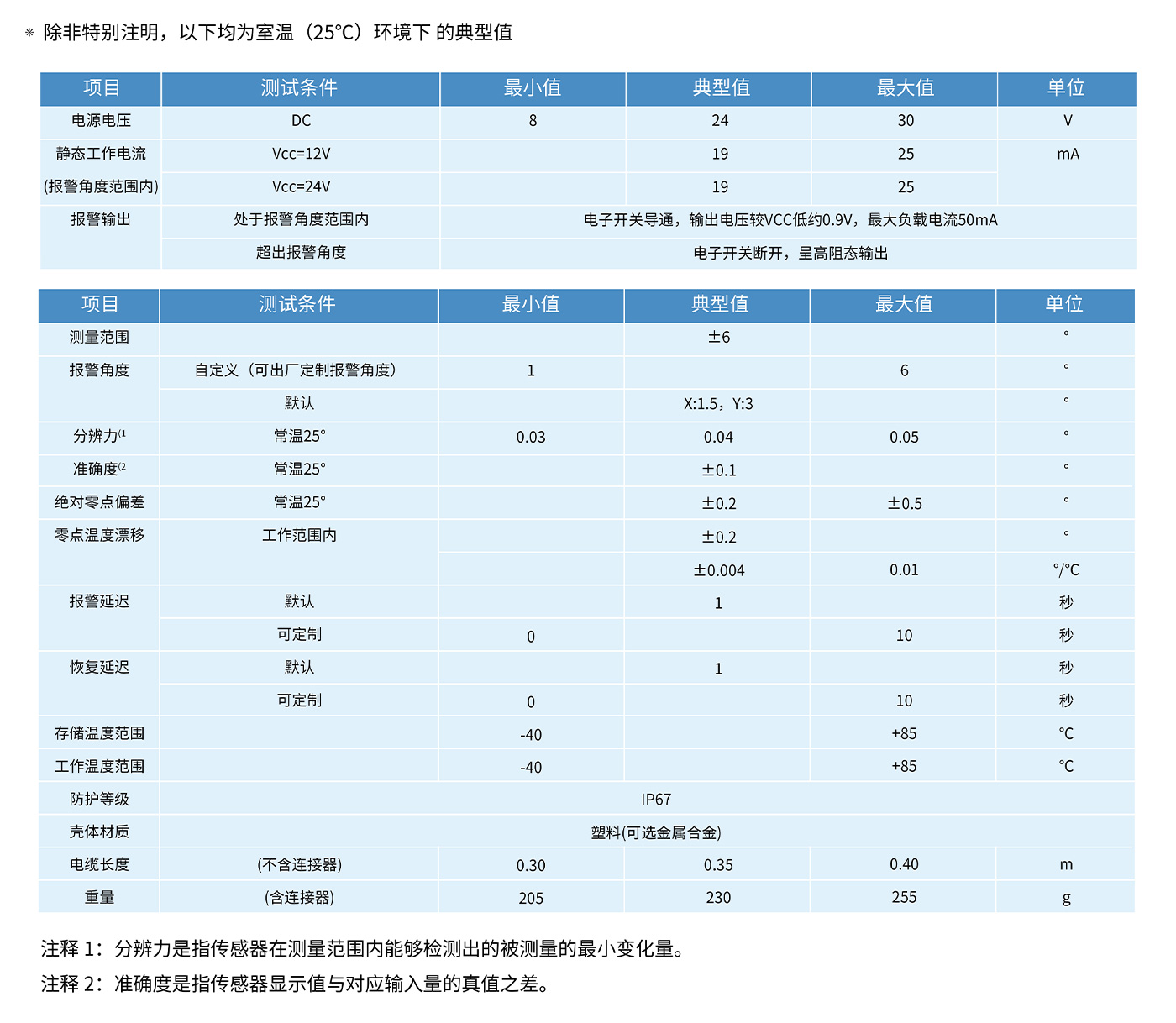? ? ? ? ?ZCT206LX-SQS-A1G-4017B 產(chǎn)品是直川科技研發(fā)的新一代高性價(jià)比雙軸傾角開關(guān),該系列產(chǎn)品采用高性能微處理器為核心,對(duì)傳感器的零點(diǎn)偏差、靈敏度偏差進(jìn)行校正,從而確保產(chǎn)品的可靠性和一致性;報(bào)警角度支持自定義,方便客戶選擇;傳感器自帶水泡,通過(guò)觀察水泡位置以及按鍵置零設(shè)置傳感器當(dāng)前零點(diǎn),使之符合現(xiàn)場(chǎng)需求,方便客戶使用。