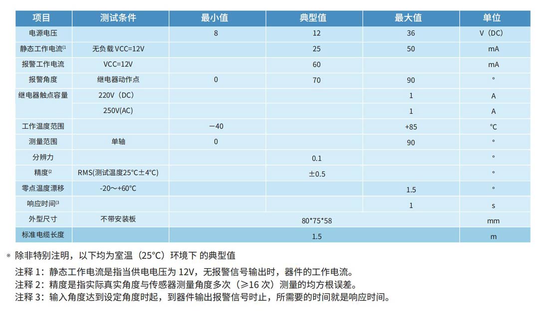 ? ? ? ? ? ? ?ZCT190J-LAS-1C-51 為直川科技研發(fā)生產(chǎn)的單軸傾角開(kāi)關(guān),測(cè)量角度范圍 0 ~ 90 度,通過(guò) RS232 串行通信口輸出,開(kāi)關(guān)動(dòng)作點(diǎn)可通過(guò)用戶命令自己設(shè)定。可廣泛應(yīng)用于工程機(jī)械領(lǐng)域。