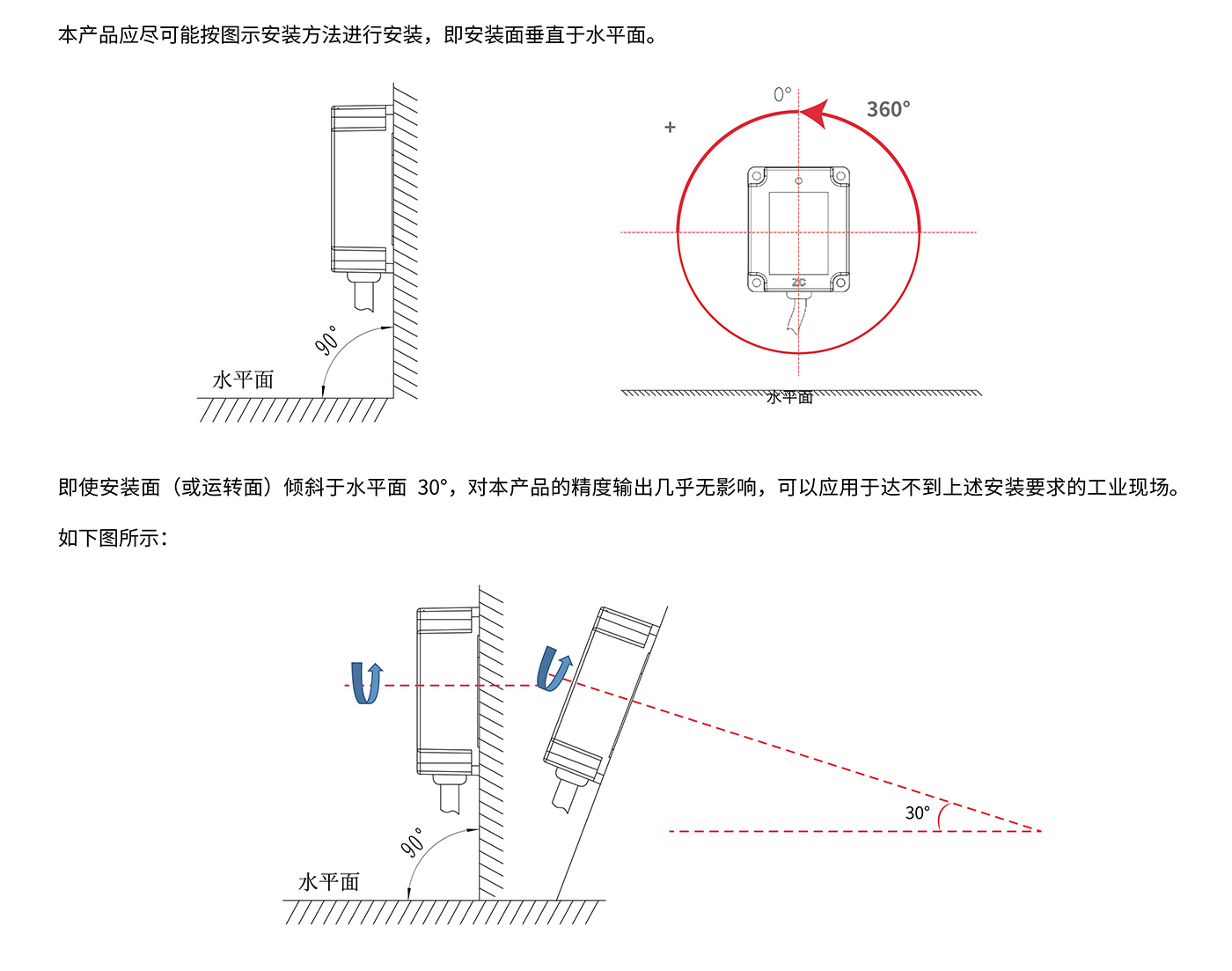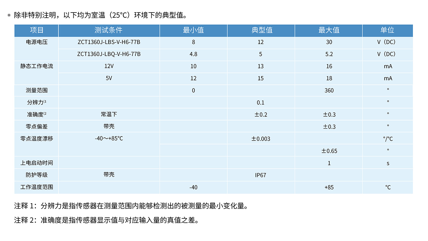 ? ? ? ? ?ZCT1360J-LBX-V-H6-77B 是直川科技研發(fā)生產(chǎn)的單軸傾角傳感器,最大測(cè)量范圍單軸 360°,精度 ±0.3°,RS485 接口,兼容 modbus RTU 協(xié)議,默認(rèn)波特率 9600 bps。該產(chǎn)品有寬電壓(8-30V)和 5V 供電兩個(gè)版本。
