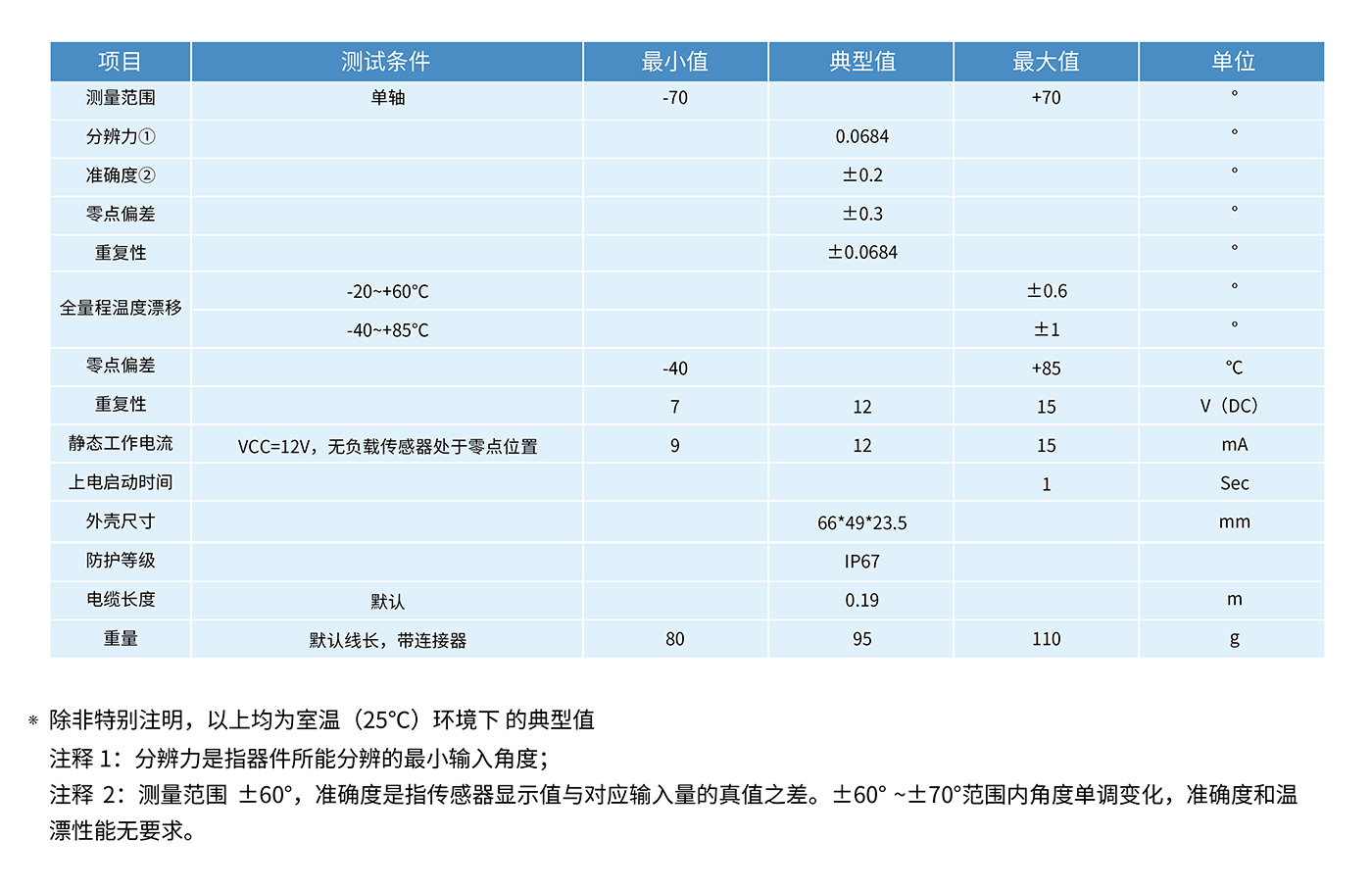 ZCT170K-LTR-AV-1007 是直川科技研發(fā)生產(chǎn)的一款單軸傾角傳感器。測量范圍 -70°~ +70°,5V TTL 以固定頻率主動輸出角度數(shù)據(jù)。